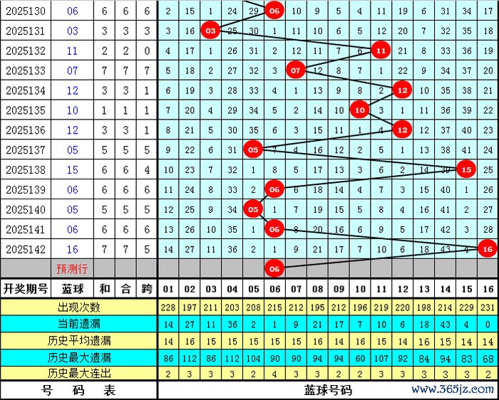 遗漏分析:最近7期红球遗漏总值区别为:19、29、11、53、38、6、30,开出5个遗漏值9以上的冷码红球,现时红球遗漏值9以上的冷码红球有4个:06、07、16、21,本期不看好这几个冷码,瞻望陆续轮空。